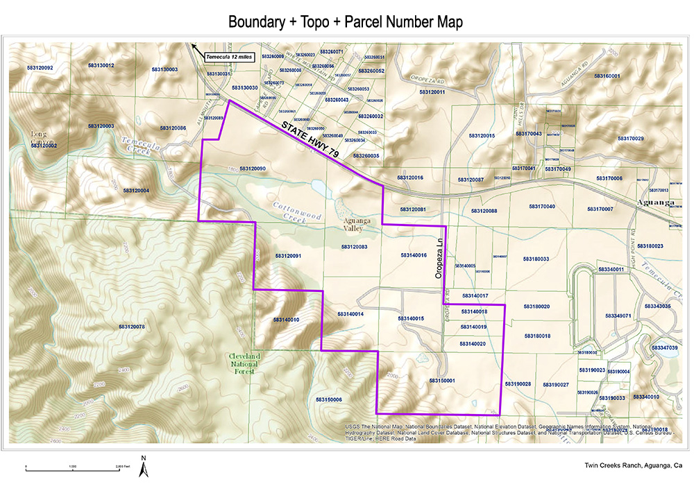 • ABUNDANT WATER – 6 WELLS: 400-1000 GPM TWO RESERVOIRS - BOTH TEMECULA CREEK AND COTTONWOOD CREEK RUN THRU THE PROPERTY